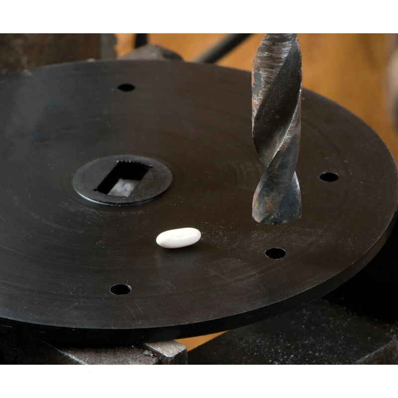 8 pre-drilled pilot holes. Possible spacings (depending on seeder sprocket combination) from 2-5″ apart. Seed plates have holes for seeds to pass through, allowing accurate singulation of larger seeds. Made of a special anti-abrasion plastic to prevent build-up of static electricity.