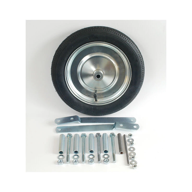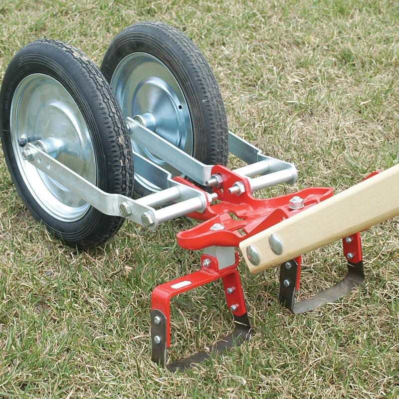 For the Glaser Wheel Hoe. Includes an extra wheel and stand-offs to provide wheel mounts to the left and right of the chassis. The wheels then track 6″ apart. Offset hoes sold separately.