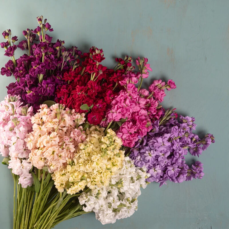 Long stems with 1 1/2–2″ blooms in apricot, bright pink, wine red, pale purple, creamy yellow, dark purple, pale pink, and pure white. Early blooming one-cut series. Performed well in our spring, early summer, and fall trials. Good uniformity in bloom time and stem length. 55–60% double-flowering without selection; some selection possible. NOTE: This variety produces one flowering stem per plant. Pinching is not advisable as it will terminate flowering.
