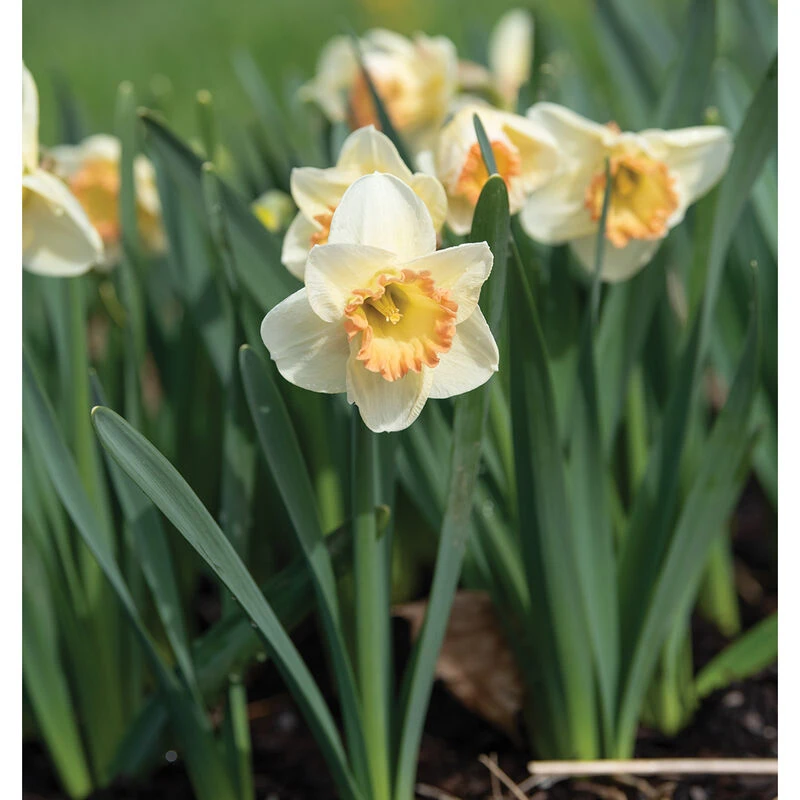 Creamy petals open to reveal a pale yellow-and-pink trumpet that darkens to a frilled coral edge. Sturdy, thick stems support 3″-wide blooms. Named after Martha for her enduring enthusiasm for gardening and flowers. Compared to Pink Charm, Martha Stewart has slightly larger flowers and a richer, creamier coloration of petals and cup.