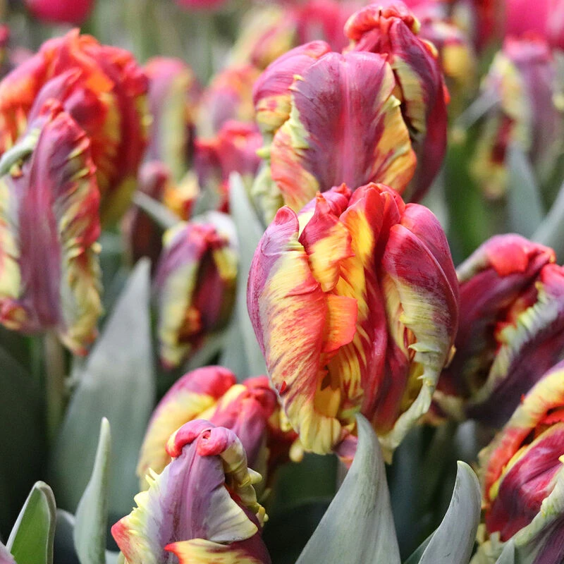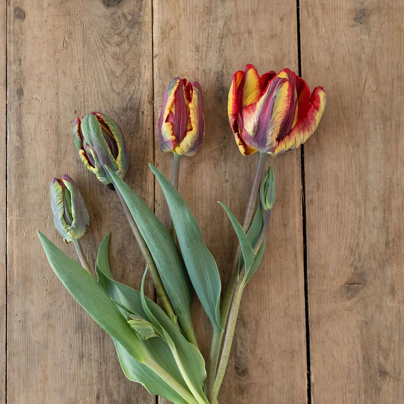 A cheerful blend of green, red, yellow, and orange. Each 2 1/2–3″ bloom is a work of art, displaying vibrant colors that appear painted on the scalloped petals. A recent 2016 introduction. NOTE: Bulbs do not come pre-chilled; if growing in hardiness Zones 8–10, see growing information (below) for pre-chilling instructions.