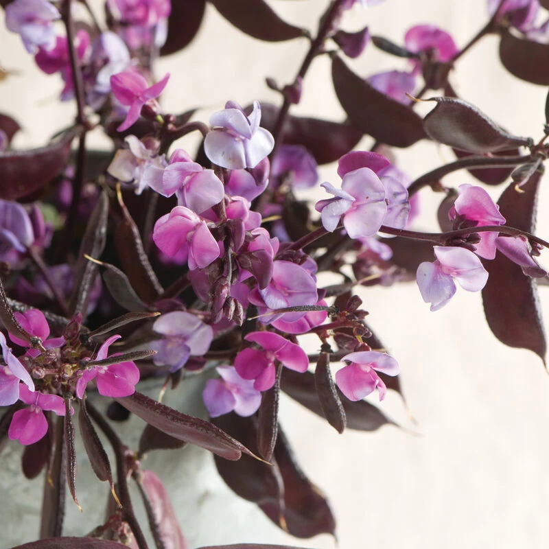 Purple stems, lilac-rose blossoms, and shiny 2–3″ magenta pods. While all parts of the plant are edible, we recommend boiling the mature seeds twice before eating. Used in Asian, Thai, and Indian cuisine. Blooms and pods are useful as cut flowers; pods may be dried. Also known as bonavist-bean, and lablab-bean. Tender perennial in Zones 9–10. Best grown as an annual elsewhere.